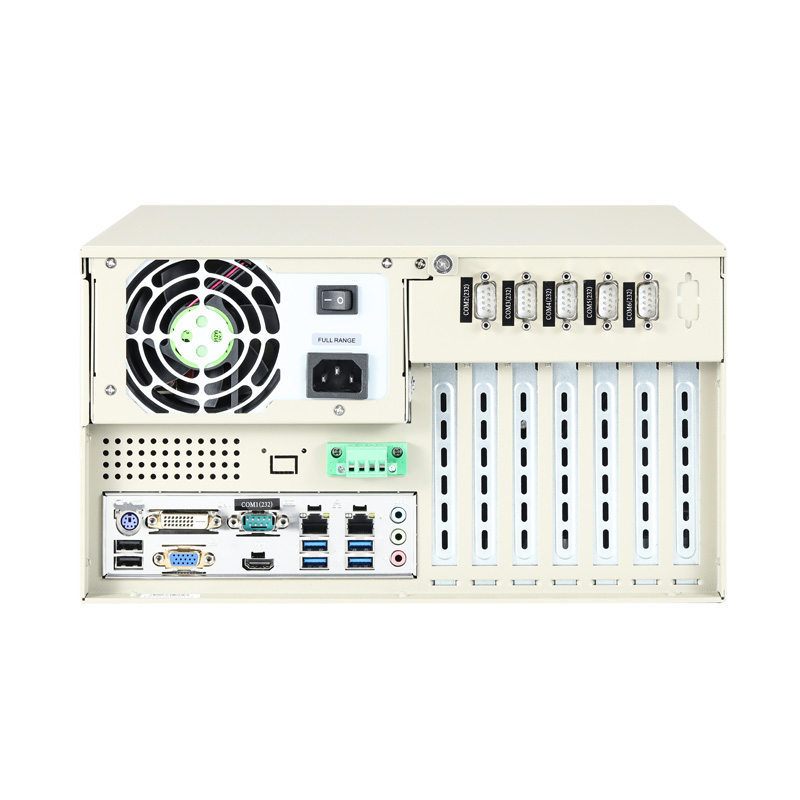 穩(wěn)定可靠 : 全金屬設(shè)計(jì),機(jī)箱可抗接觸式4KV強(qiáng)電磁干擾;AC 90-264V 寬壓輸入高性能 : 支持2/3/4/6/7/8/9代 LGA1155/1150/1151 Intel® Core? I3/I5/I7全系列CPU兼容性強(qiáng) : 支持MINI-ITX、Micro-ATX、ATX等全系列工業(yè)板卡接口豐富 : 2*LAN(Intel網(wǎng)口),6*COM,6*USB,VGA+DVI, 支持同步和異步,支持1*3.5寸和1*2.5寸硬盤位,1* PCIEx16,1* PCIEx4,2* PCI