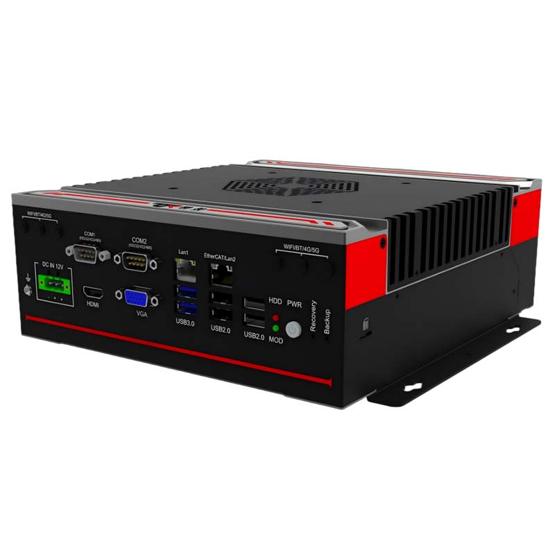 高性能 : 支持84W及以下4 代LGA1150 Intel Core i7/i5/i3 系列處理器 穩定可靠 : 純工業設計,強勁解熱熱管與純銅一體化的優良散熱結構,全密封鋁合金箱體,大面積鋁鰭散熱,可實現橫向與豎向等多種放置的自然對流散熱,機箱可抗接觸式6KV強電磁干擾,DC12V輸入接口豐富 : 2*LAN(Intel),6*COM,支持T-MOD模塊擴展,8*GPIO(2*RJ45/12DI+12DO三選一擴展),2*USB3.0+6*USB2.0 1*VGA,1*HDMI,1*DP,1*遠程開關,1*一鍵還原,1*一鍵備份,1*SIM槽,1*LINE IN,1*LINE OUT,1*MIC,1*2.5寸硬盤位,1*M.2(KEY-M,2280,PCIEx4 支持SATA),1*M.2(KEY-B,3042/3052,PCIE支持4G),1*MINI PCIE(全高,PCIE+USB2.0信號,支持WiFi/BT)外觀設計 : 鋁合金一體成型,結構緊湊,MiNi小巧,工藝精細,科技時尚